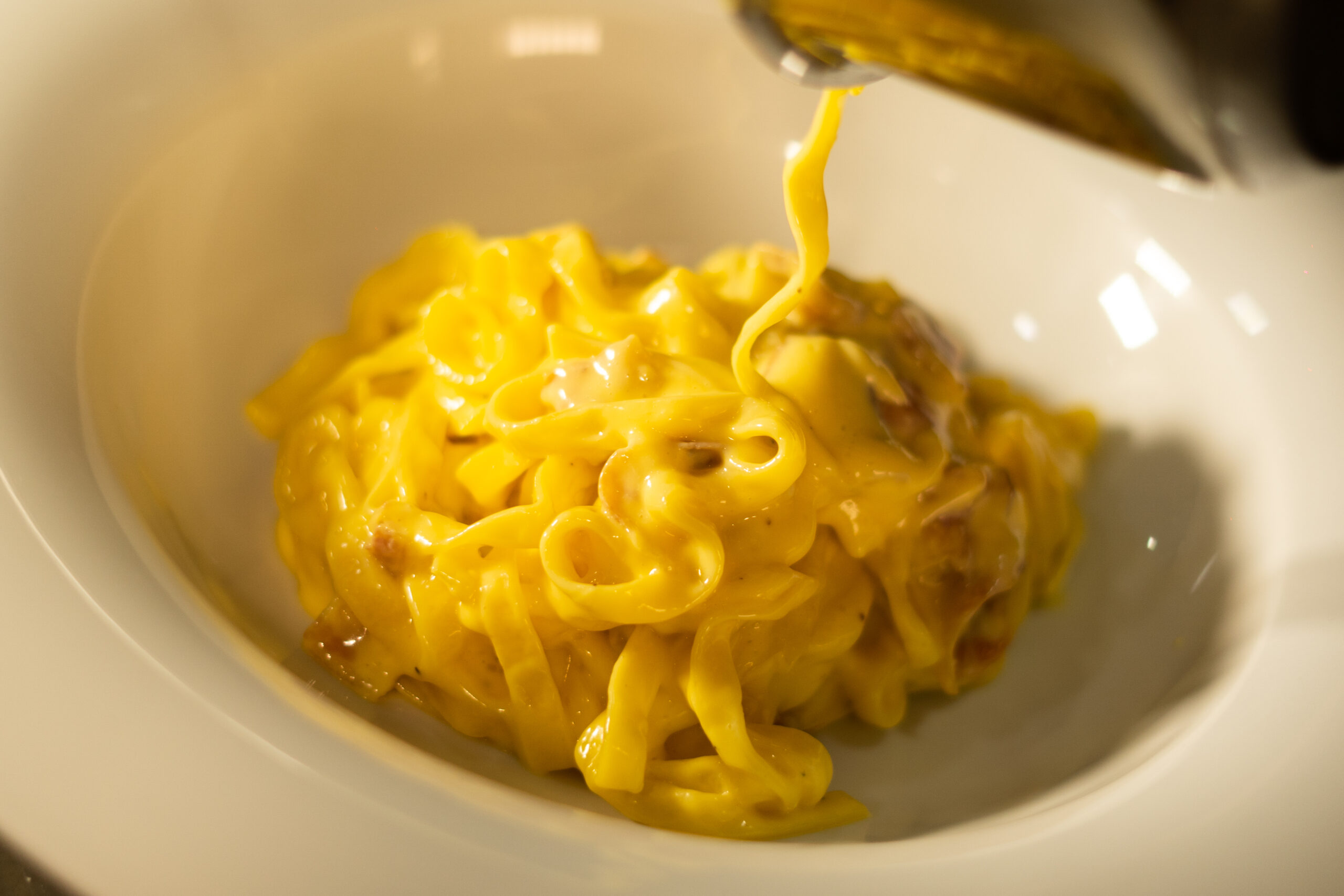 Salsa carbonara con yema de huevo, guanciale, pecorino